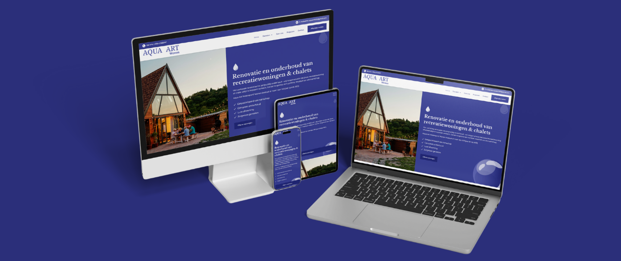 Voor Aqua Art Wonen hebben wij een stijlvolle en gebruiksvriendelijke website ontworpen die perfect de luxe uitstraling van uw diensten weerspiegelt. De site benadrukt uw specialisatie in het renoveren en onderhouden van recreatiewoningen en chalets, met een sterke focus op sfeer, rust en kwaliteit. Dankzij de duidelijke structuur en visueel aantrekkelijke elementen ervaren bezoekers direct een gevoel van vertrouwen en professionaliteit.