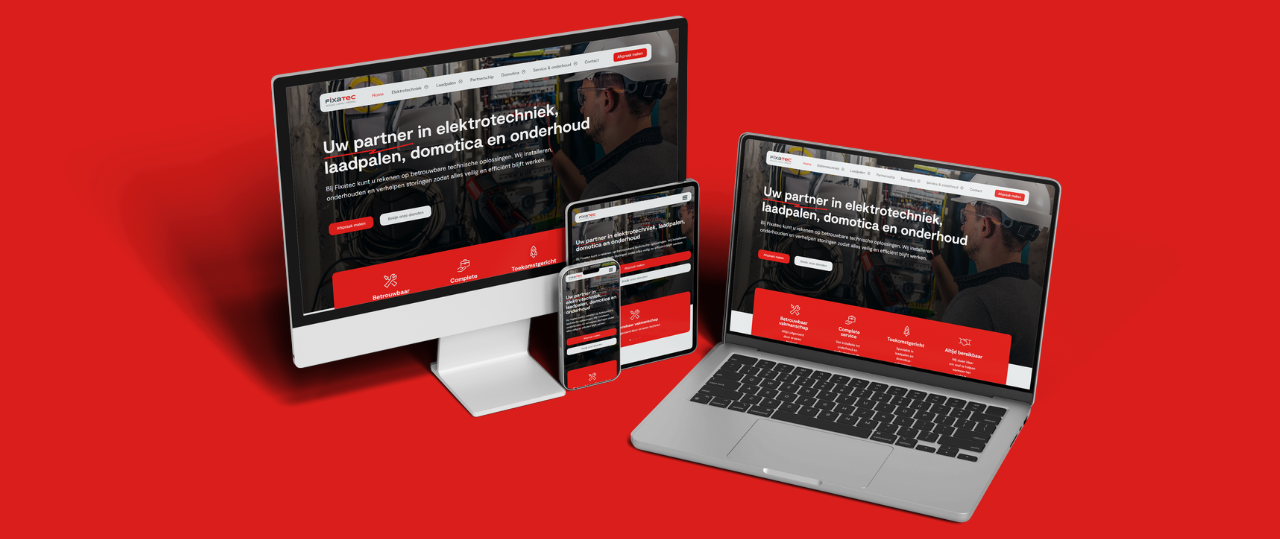 Voor Fixatec hebben we een professionele en technisch sterke website ontwikkeld die hun veelzijdigheid in elektrotechniek, laadpalen, domotica en onderhoud duidelijk naar voren brengt. De website biedt een helder overzicht van de diensten, met focus op betrouwbaarheid, veiligheid en efficiëntie. Dankzij de strakke vormgeving en praktische opbouw vinden bezoekers snel wat ze nodig hebben, van installatie tot storingsdienst.