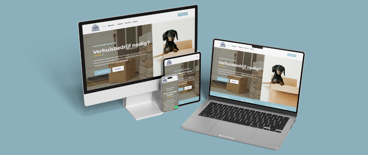 Voor Verhuisbedrijf Topservice hebben wij een duidelijke en betrouwbare website ontwikkeld die direct vertrouwen uitstraalt. Met een gebruiksvriendelijke structuur en duidelijke call-to-actions kunnen bezoekers snel een offerte aanvragen of contact met u opnemen. De website benadrukt uw servicegerichte aanpak en flexibiliteit, waardoor klanten verzekerd zijn van een vlotte en zorgeloze verhuizing.