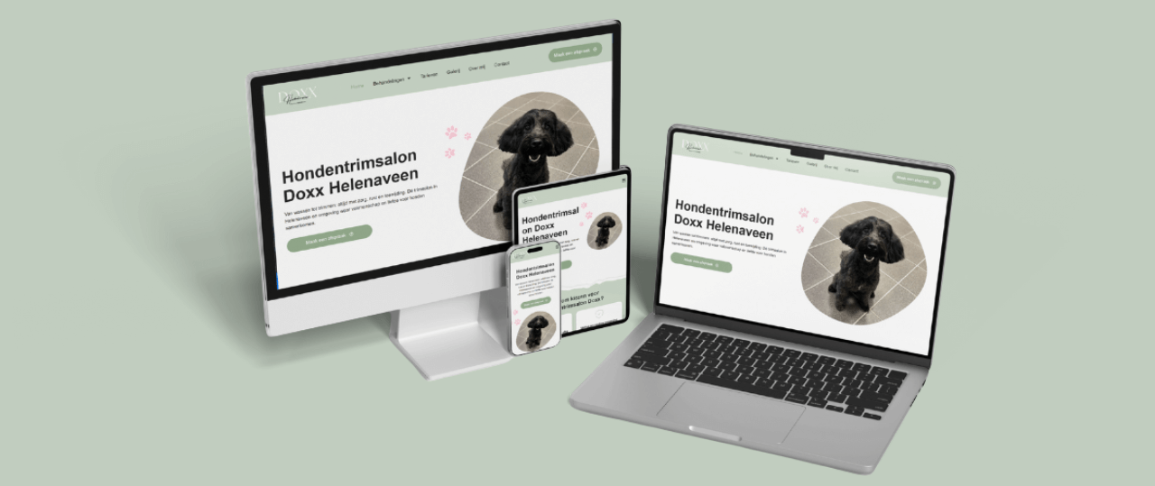 Voor Hondentrimsalon Doxx hebben we een frisse en toegankelijke website ontwikkeld die perfect aansluit bij de persoonlijke en liefdevolle zorg die de salon biedt. De website straalt vertrouwen en professionaliteit uit, met duidelijke informatie over de behandelingen, werkwijze en het maken van afspraken. Dankzij de overzichtelijke opbouw en vriendelijke uitstraling kunnen baasjes snel terecht voor een trimbeurt.