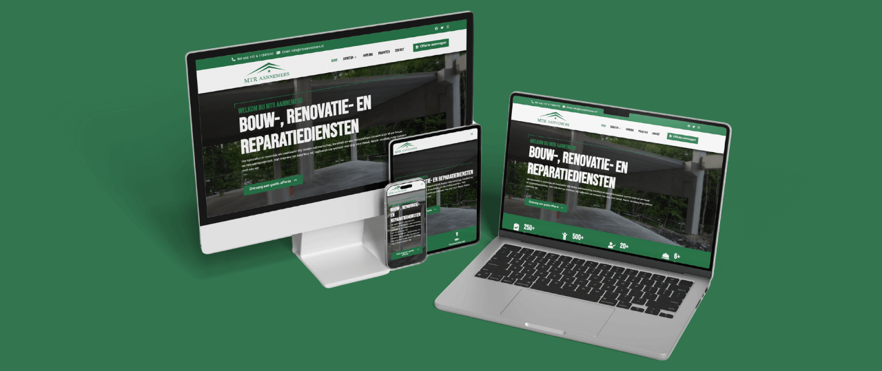 Voor MTR Aannemers hebben wij een strakke website ontwikkeld die professionaliteit en vakmanschap uitstraalt. Dankzij de duidelijke structuur en toegankelijke stijl kunnen zowel particuliere als zakelijke klanten eenvoudig informatie vinden over het brede dienstenaanbod. De website ondersteunt uw missie om betrouwbare en hoogwaardige bouwprojecten in Nederland te realiseren, met een duidelijke focus op kwaliteit, service en efficiëntie.